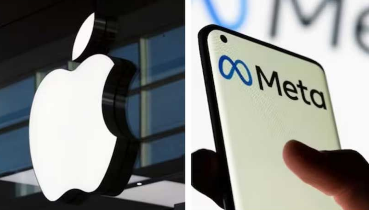 Görselde Apple ve Meta'nın logoları bulunuyo.